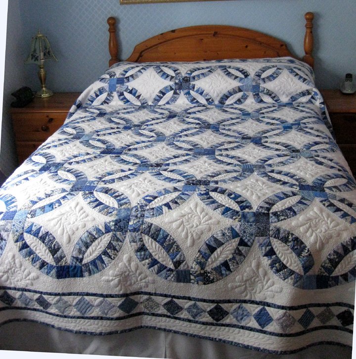 sewtrust Wedding Ring - I used all of my quilting skills and trapunto to enhance an already perfect foundation pieced design. This quilt was made for my husband, I had promised to make this for him for many years.
