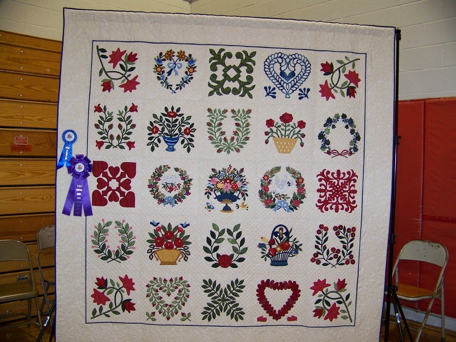 lmorben Milford Valley Baltimore Beauty Raffle - Group member raffle quilt completed for our 2011 show. We used various blocks from Ellie Sienkiewicz's books. We sold 6,000 tickets and the show was this weekend.