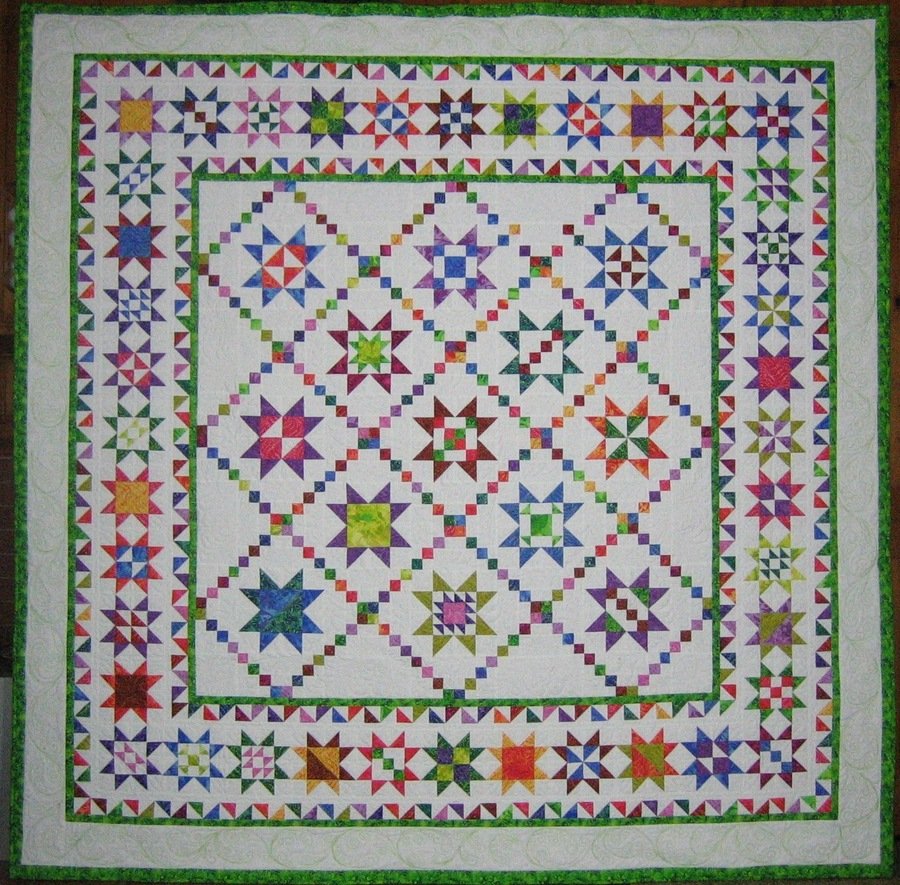 maryl1 A Whole Lot of Stars - I am delighted to have finished this gorgeous BOM from thequiltshow.com. My thanks to Sue G for an absolutely beautiful pattern. A special thanks to my friend, Mary Rossi, who quilted it for me.
