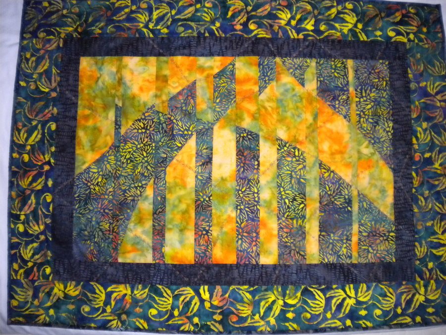 LouMull Giraffes in the jungle - My first attempt at a convergence quilt. I love the colours of this batik fabric, it brings sunshine into the room. I named the quilt after friends and family said that the fabric made them think of the jungle and the arches reminded them of giraffes.
