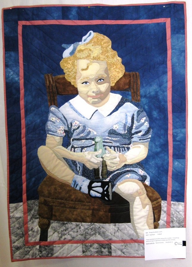 | Design Source - Description | This quilt design is taken from a picture of me taken in the 1950's. My mother settled all tears with a bottle of Coke. |