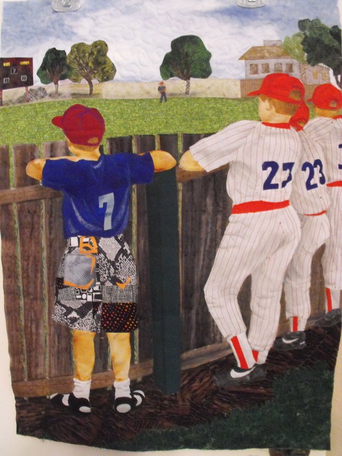 LeilaniB Is This Heaven? - A collage quilt taken from a photo I took of my two sons back in the 90's when ewe were at an AAU baseball torunament in Iowa. If you have seen the movie "Field of Dreams "you will get the connection.. "Is this heaven?...No ,it's Iowa"