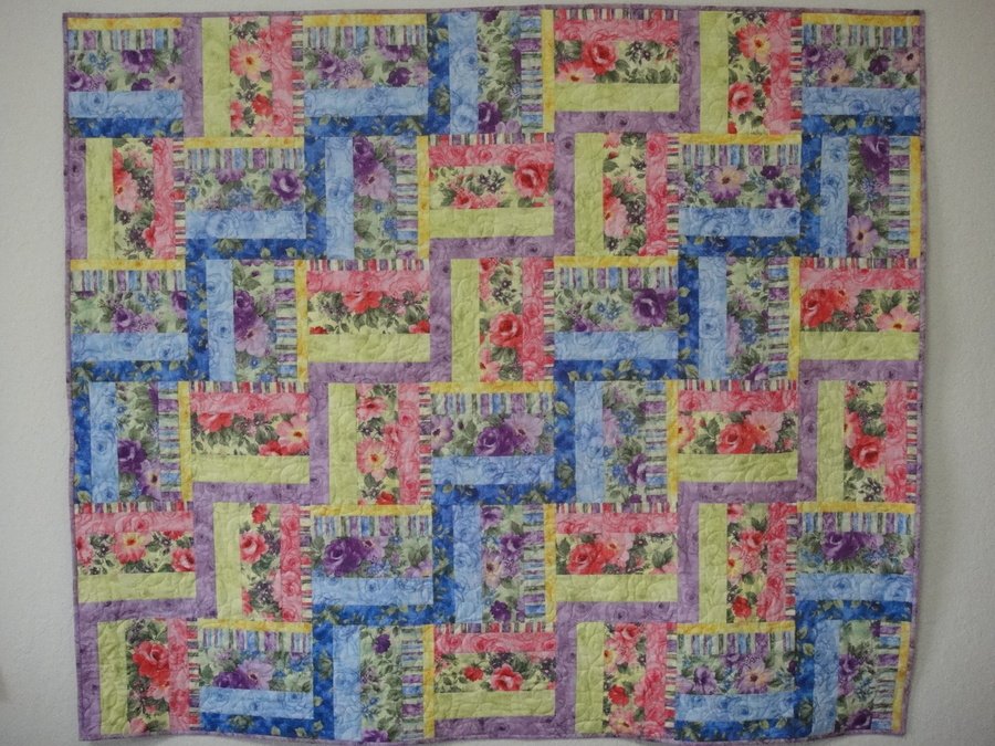 MCapps1999 A Kiss From A Rose - Just your basic split rail fence pattern ... The material was so lovely that I couldn't live without it. So I made it & quilted it to give to my mom.