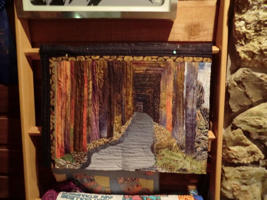 runningrhonda Follow the Path - This is my artistic design of a snow shed on the Iron Goat Trail on Stevens Pass, WA. My husband hikes and took the picture of this old snow shed that covered the rail road tracks there on Stevens Pass. This old railroad right away is now a 6 mile hiking trail. There are many old railroad artifacts along this picturesque trail.