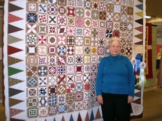 | Design Source - Description | Blocks as in book by Brenda Papadopolis.. Border trianges were not pieced, I traced the block on fabric and quilted the seam lines that would have been pieced. |