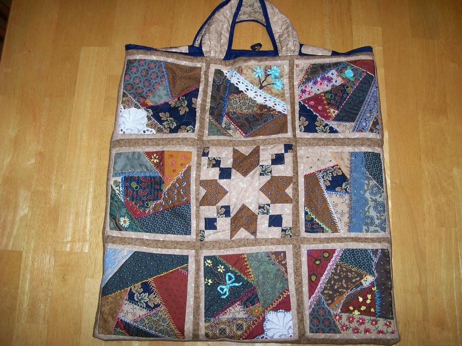 im4himfirst Crazy Quilt Bag - Original Crazy Quilt Bag Design ~ we're going to NH "Mancuso" :) Created from practice blocks ~ test stitches, colors, textures, before in actual project. Quilted, CottonBatt, backed, hand shoulder straps, button closure :)