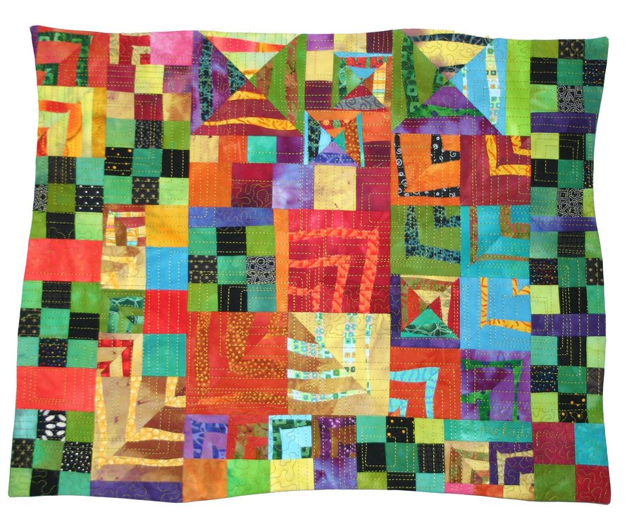 mdquilts Revisit #1 - Began playing around with construction of the wavy module units while traveling and teaching (this is what national teachers do in hotel rooms across America...lol) and when I got back to my studio I pulled out some scrappy traditional pieced blocks (dear friend Bonnie Hunter can be such a brain worm) and threw everything up on the design wall (along with a few filler fabrics) and began to play. This is what happened. And this is now a 2 day workshop entitiled "Module Stew".