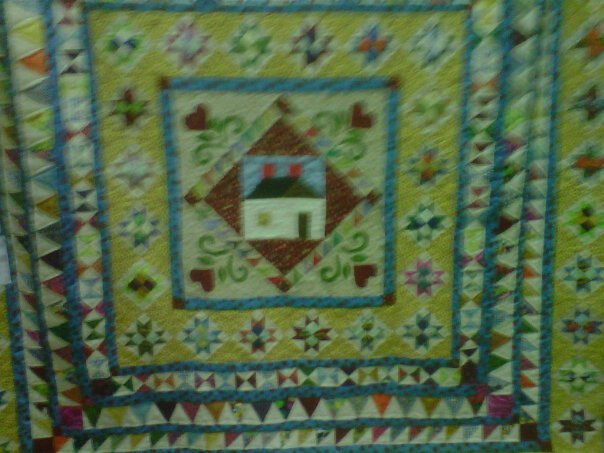gasweetie Heart and Home - I fell in love with pattern on sight and made it as fast as I could. It was a challange to me to do applique, even as little as is in the quilt. The quilt came our wonderful and my little short-longarm was able to quilt it easily since all the rows break up the design a lot. I used only fabrics from my stash and tried to use as many fabrics as possible in the top. The yellow background fabric has been in my stash for almost a decade waiting for the perfect project.