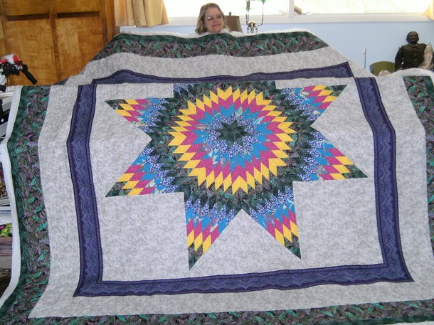 gasweetie LoneStar in Purple - My sister picked all the colors and I made it for her. But by the time I finished it, she had redecorated her bedroom and no longer wanted it. I took so long to make a quilt for her that she learned to quilt and now makes her own quilts. Lucky ne. I get to keep it.