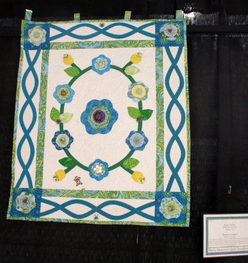 Kittenboysmom Button Garden - A fun project, used vintage buttons and colors that were a departure for me. A practice to learn free motion quilting as well.