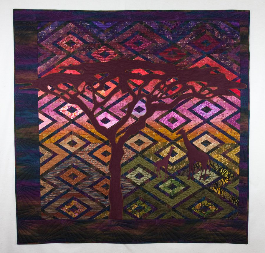 krwatts Serengeti Sunset - I designed Serengeti Sunset in response to a challenge with the theme "Out of Africa". Our goal was to choose the best 8 quilts to enter the AQS Ultimate Guild Challenge in Knoxville. We were juried in and won Honorable Mention!