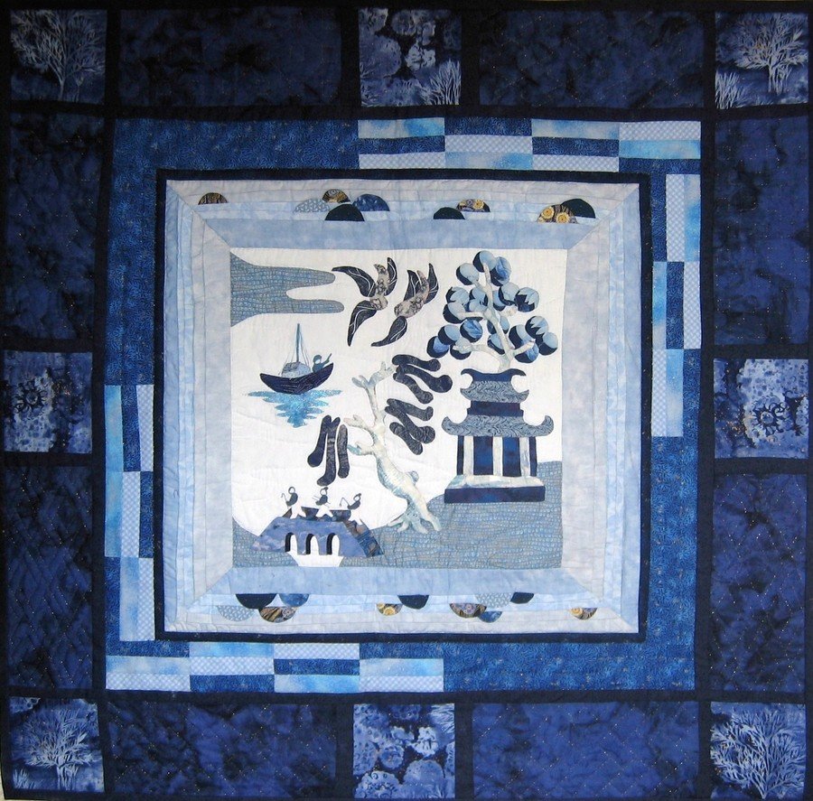 kratersge Blue Willow Round Robin - Borders: Victoria Person, Sallie Powers, Kathy Wickham. Sashiko designs quilted in outer border.