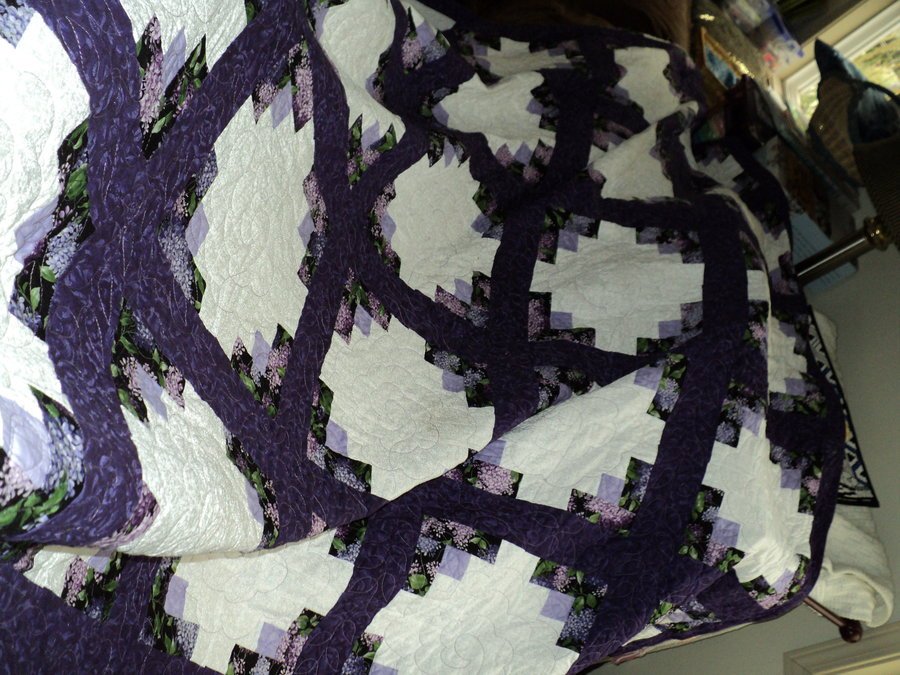 MTquilter09 Floral Dreams - Purple and White log cabin blocks have never looked better!! The quilt blocks were put together on a night of staying up with new grandson to make sure he kept breathing so quilting was my way of dealing with the stress--what a great stress reliever.
