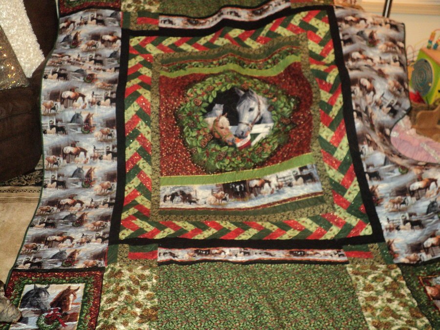 MTquilter09 Horsey Christmas - I started this quilt with the Horse panel and wanted to try something new so I did the braid in Christmas and just really played with it until I came up with this--this will be one of the granddaughter's Christmas presents this yr.