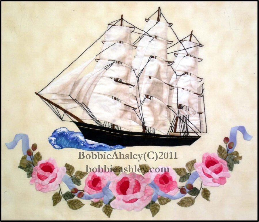 bobbiea0106 The Blushing Rose - My first design using a ship. All that rigging, argh! was worked in a whipped stem stitch. It took a bit of stitching, but it was worth every minute.