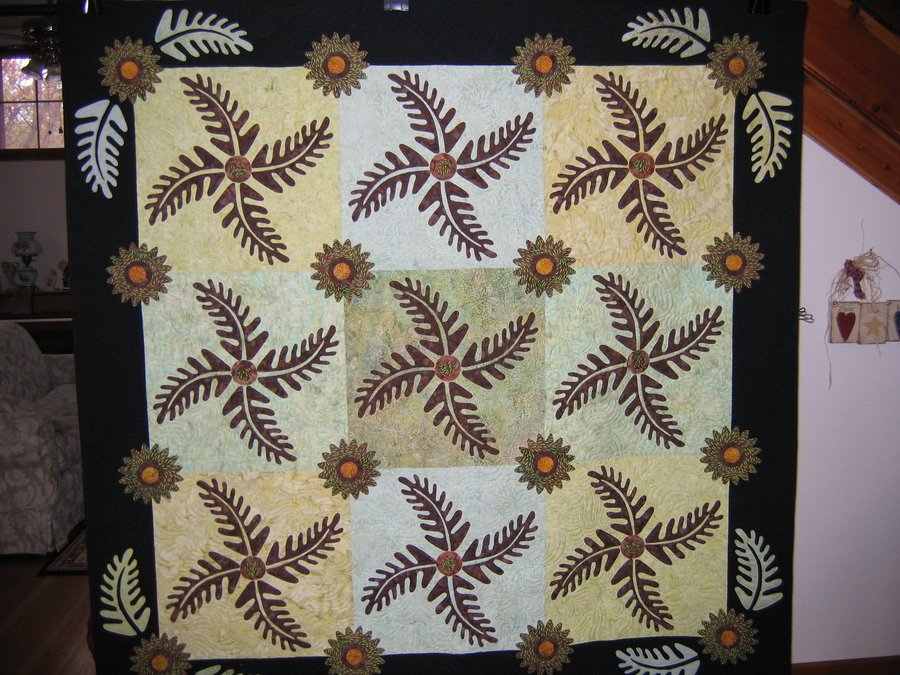 Susan101 Swirling Ferns - This is such a striking quilt and so easy to make. The pattern called for raw edge applique but I used fusible web also.