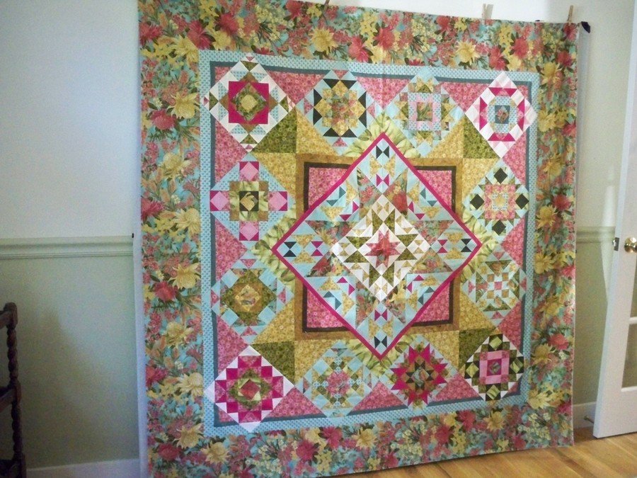 LindaBJ Under the Australian Sun - This was a block of the month at our local quilt shop taught by Beth Whitman. We selected our own fabrics and I modified and enlarged the outer border. It's currently being quilted so the picture shows only the pieced top, which I'll update once it's quilted.