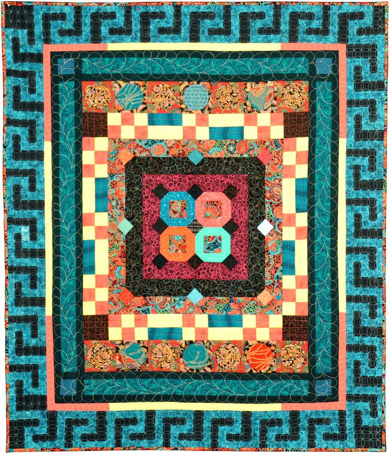 BethD Rolling Stone Medallion - A round robin quilt contributors are: Beth Donaldson, Diedre Garlock, Debbi Brunner, Karen Mirras and Rhonda Anderson.