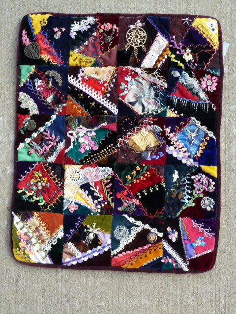 Nanelas Victorian Minature - This miniature crazy quilt is full of embellishments and embroidery.