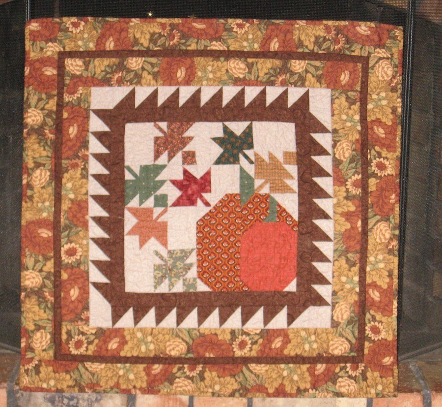 quiltingbeargal Pumpkins for Sale - Autumn is my favorite time of the years so I wanted a quilt that represented that season and could be used for a few months before the Christmas quilts go up. All fabric came from my "resource center", what some people call "stash." No new fabric purchased for the project.