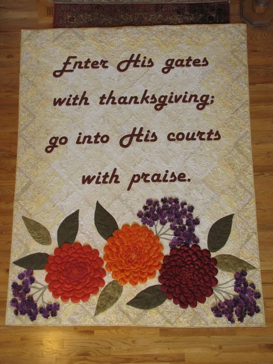 sbrim Thanksgiving church banner - Our church built a new sanctuary and I needed to make much bigger banners. This was made to celebrate our thankfulness for our new place of worship. Flowers are made with Texture magic.
