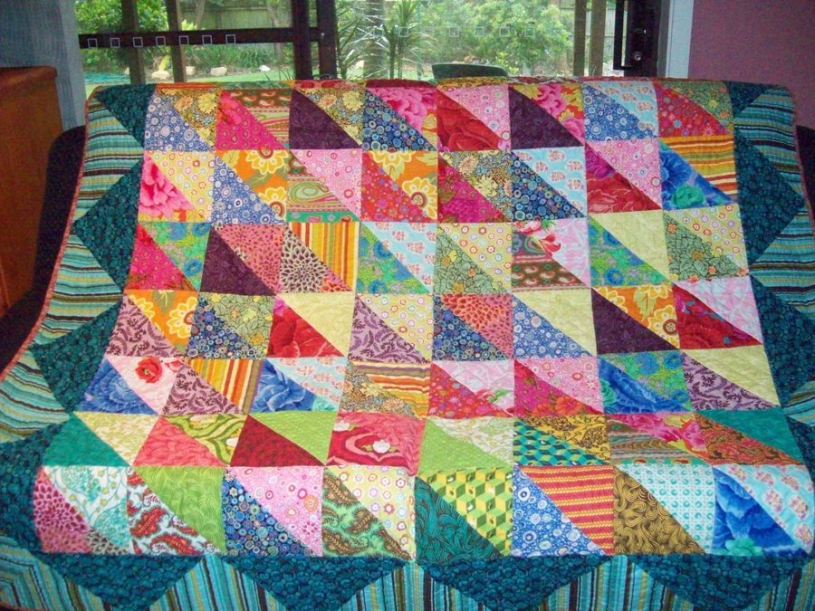 Copa55 Tropical Crush - I bought Kaffe Fassett's book Quilts in the Sun to make Tropical Frothy, but for some unknown reason I decided to put the blocks together in rows, rather than diamond shapes, which changed the whole look of the quilt, but I still like it.