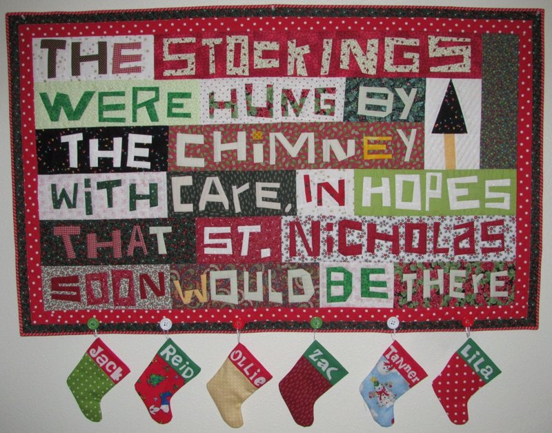 clhughey Christmas Quilt using Word Play - After watching "The Quilt Show's" video on Word Play, I decided to give it a try. It was totally fun and creative. I added the stocking, at the bottom, and plan to put treats in them for when my grandkids come for a visit.