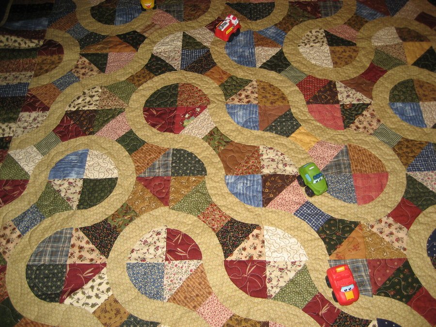 | Design Source - Description | When I saw the pattern, I saw roads for small cars to travel. I made the quilt for the grandkids to play cars on. We will have a grand time playing together. |