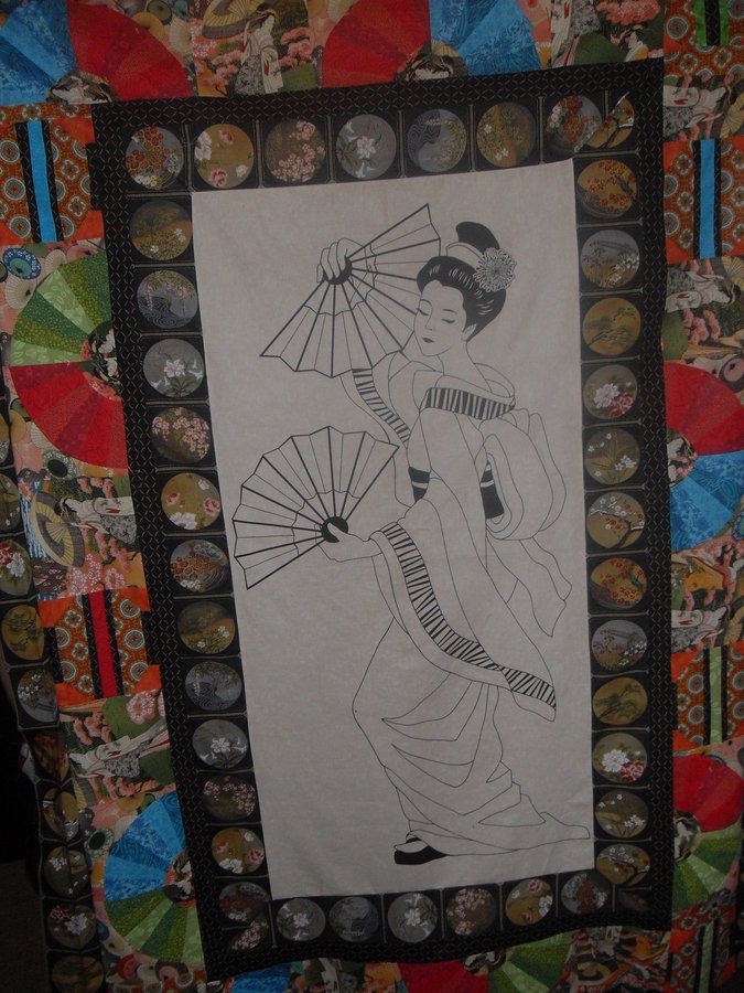 rfbrazell Geshia Lanterns - A series of Lanterns and Fans that border a geshia panel embellished with metallic thread.