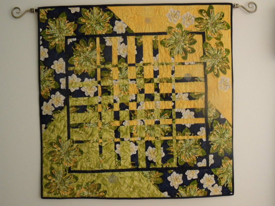 winkydink13 Springtime Elegance - Based on Ricky Tim's convergence quilts. I used a beautiful commercial floral fabric and also two self patterned fabrics, I cut out flowers from the floral fabric and appliqued them on. I had fun machine quilting flowers and other shapes on and then added some swarvoski crystals.