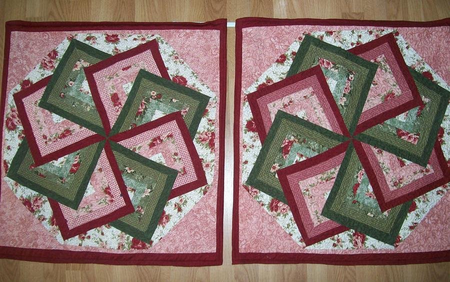 im4himfirst twirling the scraps - These two small quilts I made from the fabric scraps leftover from a sampler quilt I pieced for a double bed. These two quilts hang up to cover the bookshelves in that room. I reversed the pattern when making one of them so that they are spinning in opposite directions.