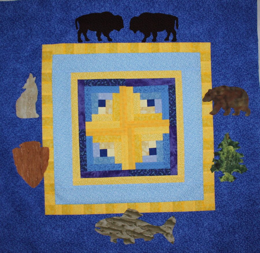 | Design Source - Description | Created for retiring Rangers from the Madison Junior Ranger Station in Yellowstone National Park, where I work. The background is a traditional log cabin, the appliques are icons from around the park. |