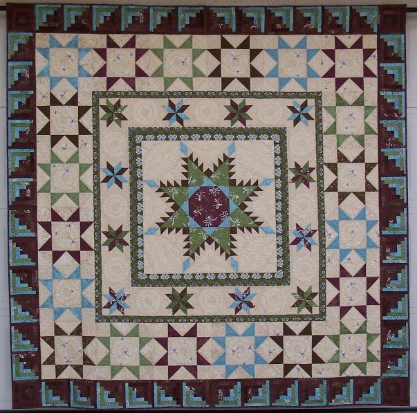 PittsburgPam Starred & Feathered - I made this for my daughter using traditional blocks, designed in EQ7. The little log cabin blocks around the outside are only 6" square.
