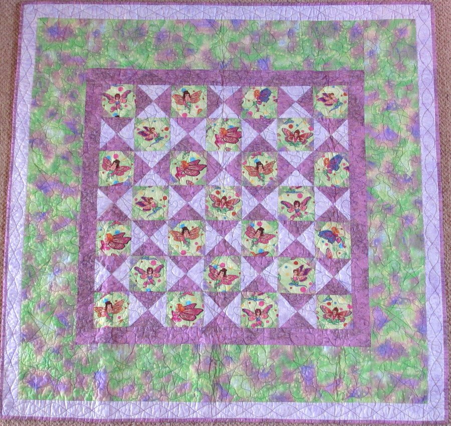 Diane-53 Fairies with Attitude - This was started for a different granddaughter in approximately 2002. I finished it and it ended up with a different grandaughter. But still very fitting. The back is minky.