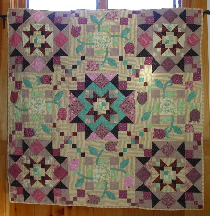 cactusbasket Bethany's quilt - The backing of the quilt is from a quilt made by Ellen Teegarden, Great Grandmother to Bethany. Much of the surrounding area was stained and tattered so I cut out the entir part for the backing. The fabric from this quilt could be from the 1920s or 1930s. See the next picture for the backing