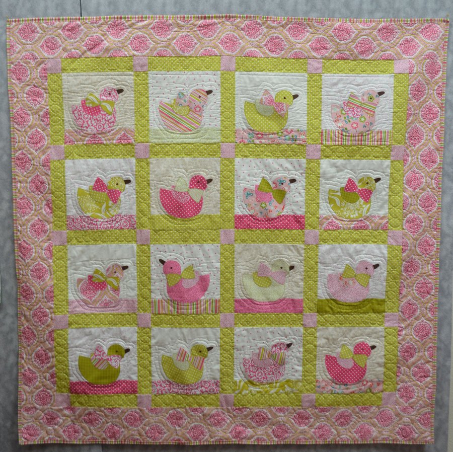 | Design Source - Description | Made for my daughter in law on the event of their second child's baby shower. All in pinks & greens on neutral background, fused applique, and quilted on my Gammill "Flora Belle". |