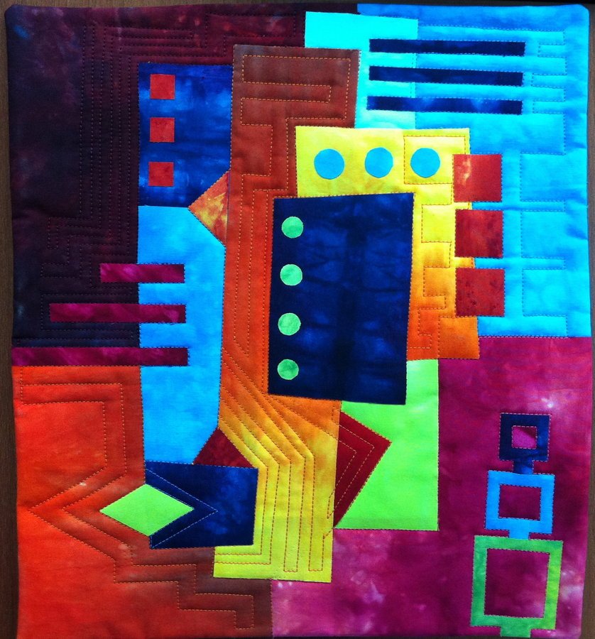 quiltaddict67 Lab 1 - This small quilt was created following Melody Johnson tutorial Hand dyed fabrics, fused, free motion quilted