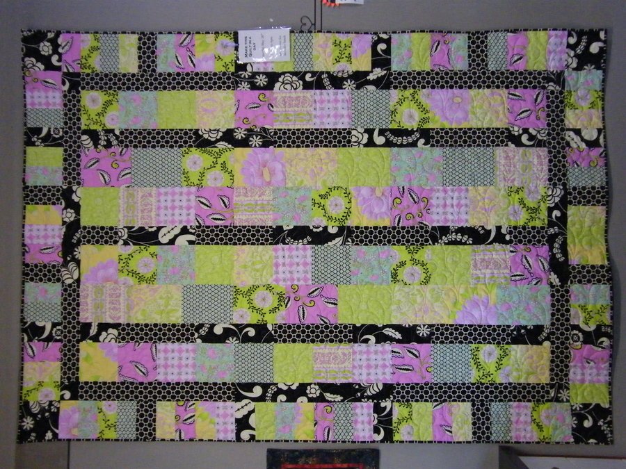 QuiltersLane Jenny's Daydreams - I created this design on EQ7. The quilt reminds me of architectural design which is why I named it after my niece Jenny who is training to be an architecht. I love the contrast of the black and white sashings with the various sizes of printed fabrics. The fabrics are from the Snowflower range by Free Spirit. Using the variety of print scales gives this quilt design movement, and I love the modern, fresh colours. I have taught this class to lots of quilters and helped them choose fabrics for the quilt in many colourways, I am always excited by the beautiful and differnet combinations we come up with.