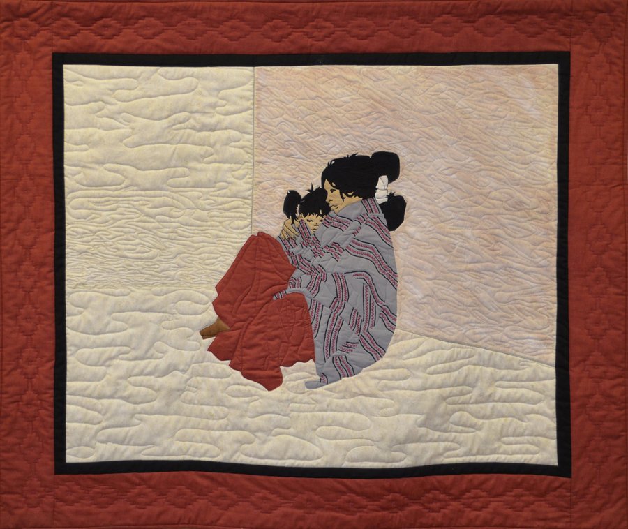 Perri Loving Mother - This quilt was made from an original drawing by the late batik artist, Marlene McGoffin. It was entered and accepted in the "100 Quilts for 100 Years" competition held by the Arizona Historical Society. It hangs for one year in the Historical Society in Tucson and then will travel around the state for another year.