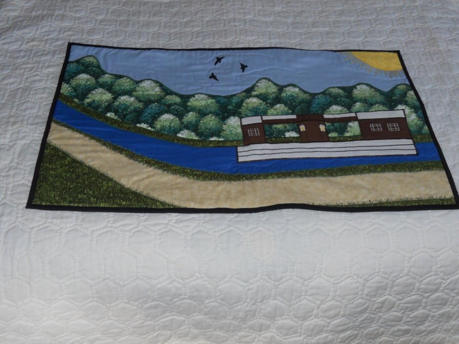 MAMA2TNT Belle of St. Mary - My inspiration for this quilt is the Belle of St. Mary canal boat on the Miami and Erie Canal in St. Mary, Ohio. This is a primitive, shortened version of the actual much longer boat. This quilt was made for a guild challenge of using 1) a curved seam 2) a boat and 3) the color yellow.