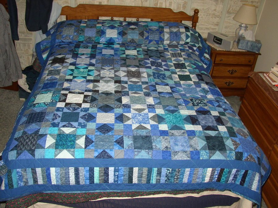 MAMA2TNT Blue Fusion Scrap Quilt - This quilt was made for my nephew and his bride.
