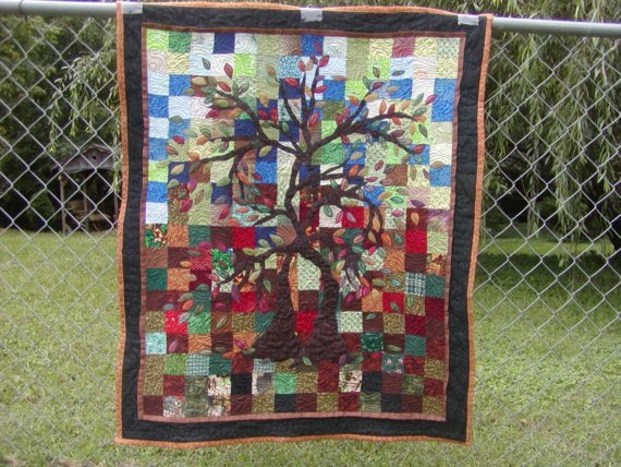 mostlydebbies Spring to Fall - A landscape design of trees on a pieced background. The reason I named this one "Spring to Fall" was because I couldn't decide on whether to use spring leaves or fall leaves so I used both .