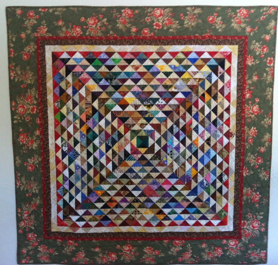 | Design Source - Description | Made for the Sisterhood of the Traveling Triangles Exchange. Long arm quilted by Shelley Nealon. |