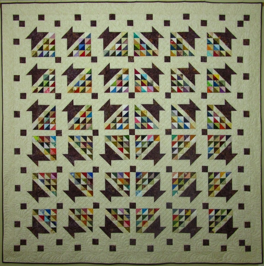 Ginochka Grandmom's Fruit Bowl - The HST's in this quilt were pieced by some of the 560 participants of the SoTTT exchange. I used the basket block pattern in Edyta Sitar's Friendship Exchange book and designed the layout of the blocks myself. The finished quilt top was then quilted on my longarm sewing machine.
