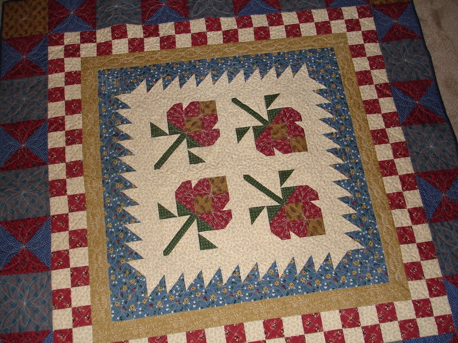 mlquilts Thimbleberry Blossoms - This was the first time Thimbleberry Club has actually published a pattern representing the Thimbleberry Blossom. I made the top but I only quilted it this year in April 2012.