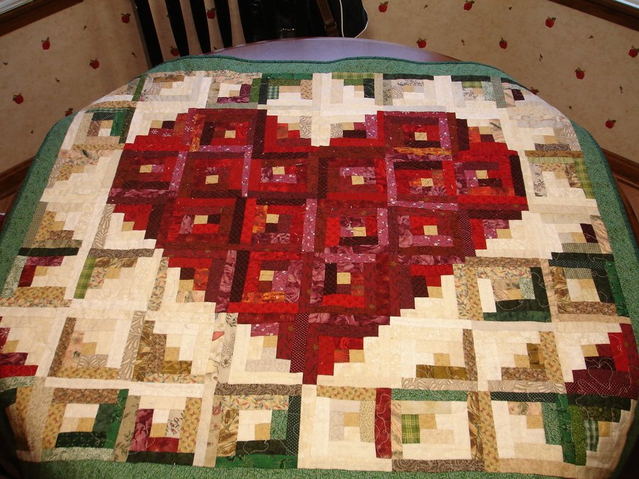 | Design Source - Description | This is a small log cabin quilt that forms a heart with the placement of the log cabin blocks. Although this was pieced several years ago, I only quilted it this Februrary of 2012. |