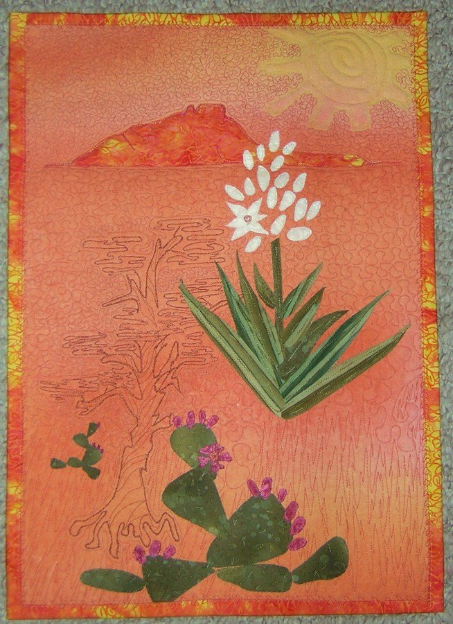 redrockslady High Desert X-scape - Designed and quilted for the Scrappy Ladies quilt show in La Veta CO. The theme this year involves gardens/gardening.