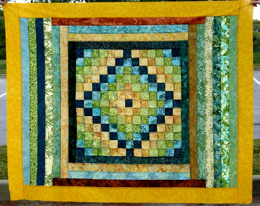 GeneBlack Batik Journey - This quilt top has since been quilted by Gene Black. This is a Trip Around the World with a log cabin type border.