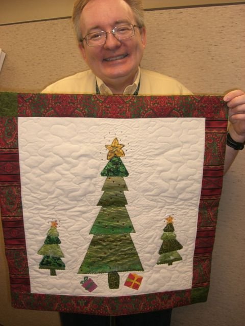 GeneBlack Trio of Christmas Trees - A fun fused wall quilt made with both die cut and free cut shapes.
