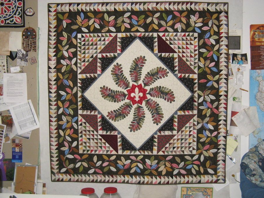 | Design Source - Description | Princess Feather center with lots of triangles, plus leafy vine border. |